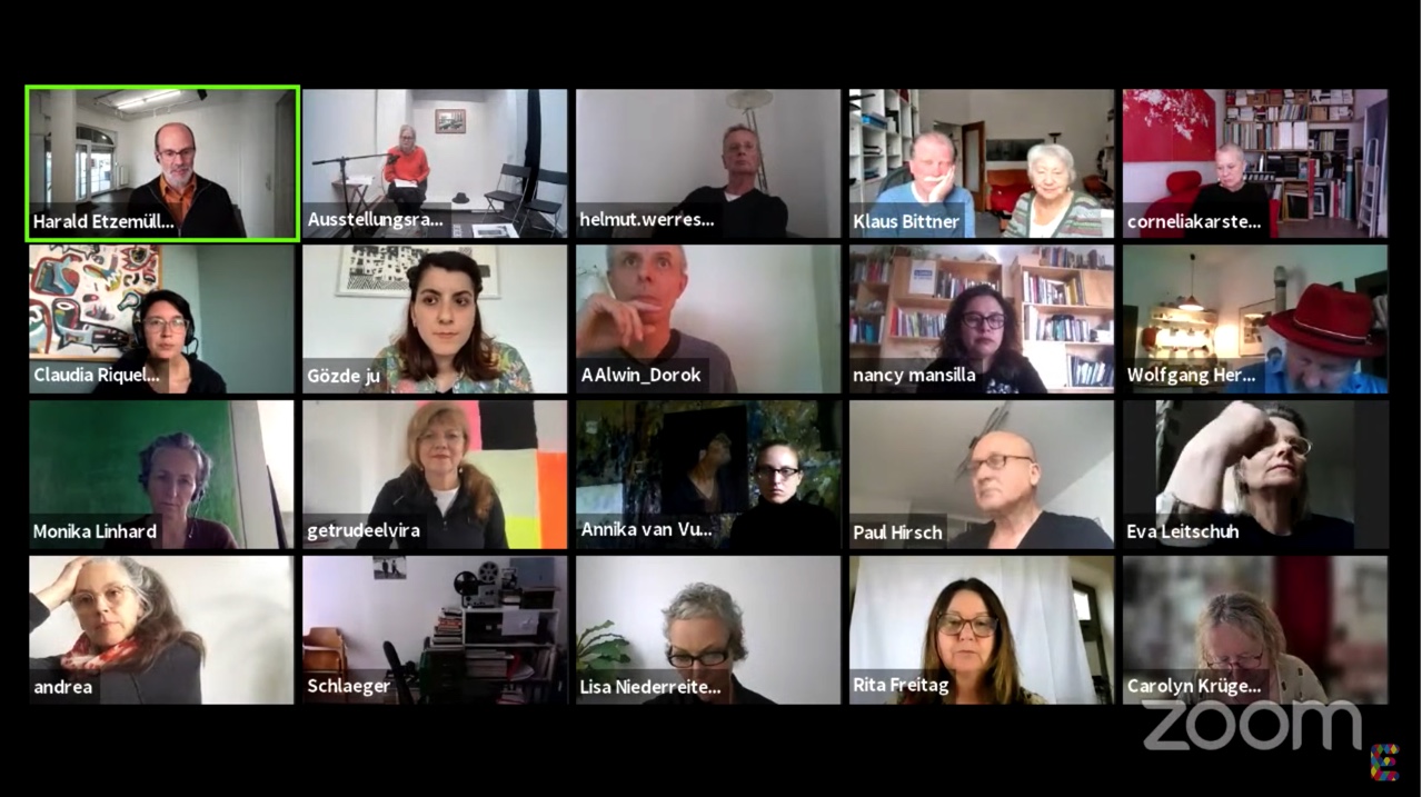 Am Geburtstag, Mittwoch 12.05.2021 fand ein fast 9-stündiges Zoom Meeting online und ausgestrahlt aus dem Ausstellungsraum EULENGASSE in ganz besonderer Form statt: Mehr als 30 Künstler*innen erzählten, was Beuys mit ihnen und ihrem Werk zu tun hat, es wurden Videos gezeigt, mit dem Publikum über ihre Werke diskutiert. Ausstellungsmacher*innen und Zeitzeug*innen berichteten in Interviews von ihren Begegnungen mit der Person Beuys und seinem Werk.