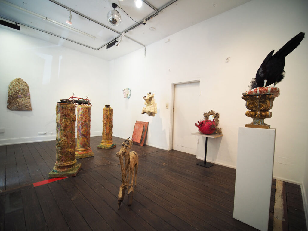 In seiner ersten Ausstellung außerhalb Kassels zeigt Lukas Schöne bei EULENGASSE Objekte, in welchen tierische und pflanzliche Aspekte dominieren: Aus modellierten Formen wachsen reale Tierpräparate, Werke aus Papier und Textilien